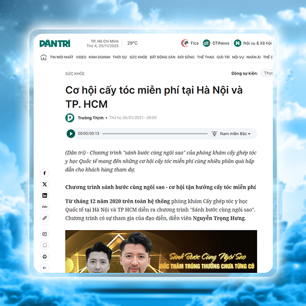 Tóc thưa, hói đầu? Lý do các báo lớn đồng loạt nhắc tên Phòng khám Cấy ghép tóc Y học Quốc tế