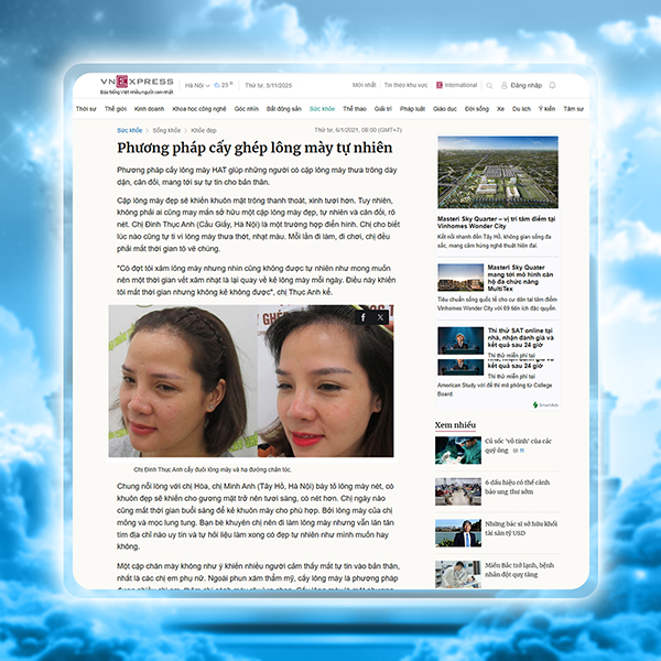 – Vnexpress: Tại Phòng khám, còn triển khai dịch vụ cấy lông mày tự thân. Nam/nữ có lông mày thưa, mất lông mày hay đơn giản muốn thay đổi dáng lông mày có thể tham khảo dịch vụ này.