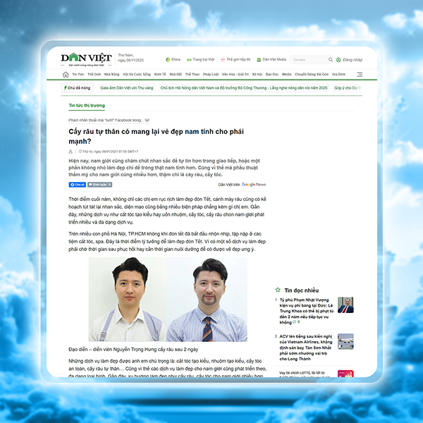 – Dân Việt: Dịch vụ cho phái mạnh – cấy râu tự thân. Khách hàng được thiết kế dáng râu phù hợp, râu mọc tự nhiên và bền vững.